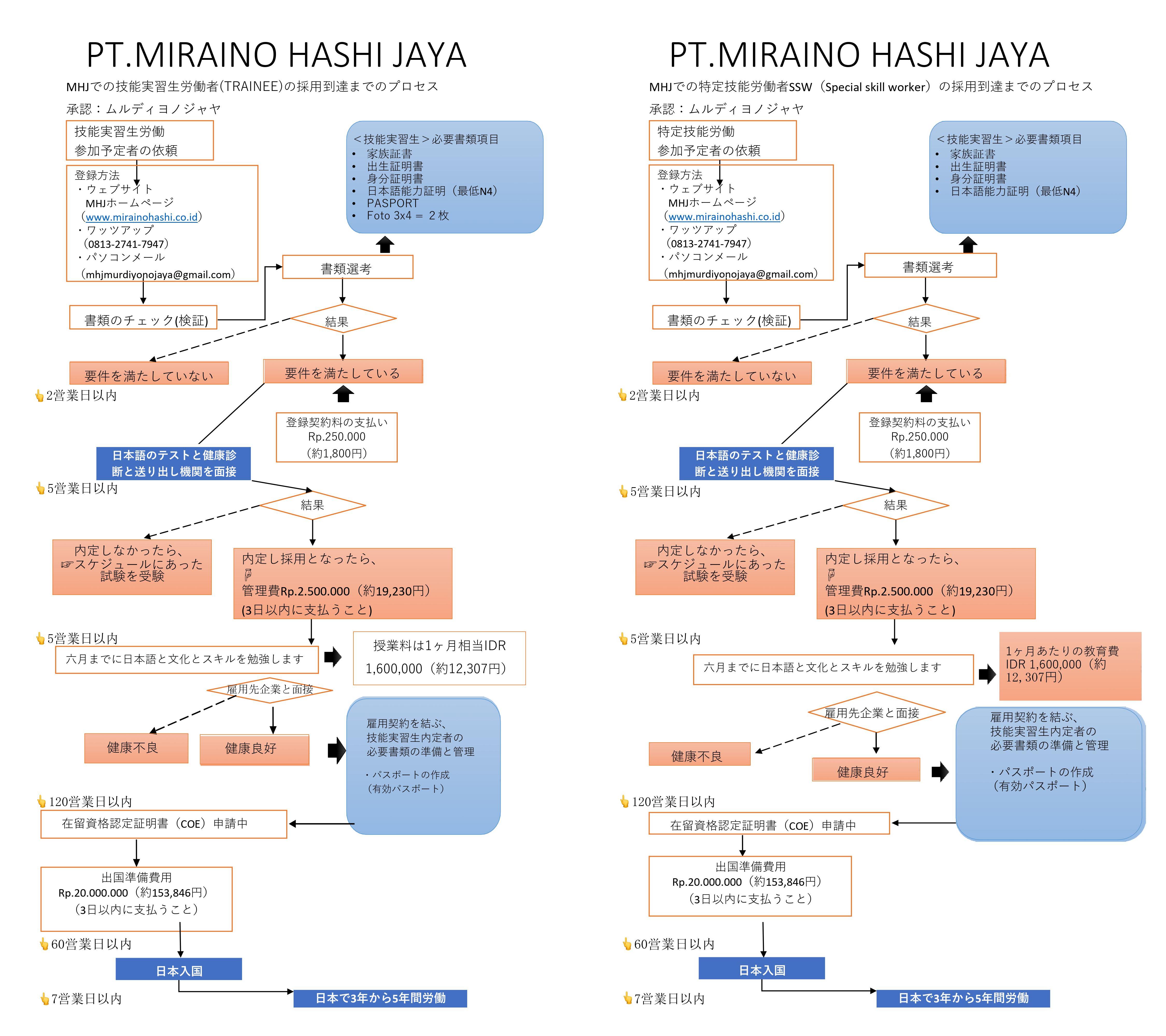 LPK Miraino Hashi Jaya adalah Lembaga Pelatihan Keterampilan yang didirikan sebagai wadah Pelatihan siswa yang akan magang atau bekerja di Jepang. LPK Miraino Hashi Jaya berpusat di Kabupaten Bekasi tepatnya berada di Satriajaya, Kec. Tambun Utara. LPK Miraino Hashi Jaya berdiri sejak tahun 2017, dan tahun 2019 sudah mendapatkan izin SO, sampai saat ini kami sudah memberangkatkan siswa/i sebanyak 700 orang lebih dan akan terus bertambah setiap tahunnya. Berdirinya LPK Miraino Hashi Jaya di Bekasi berdasarkan atas pertimbangan banyaknya permintaan akan kebutuhan siswa magang/bekerja ke Jepang. LPK Miraino Hashi Jaya juga menyediakan pelatihan Bahasa Jepang.